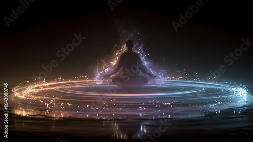 Serene meditation scene showcasing peaceful yoga pose in tranquil environment with calming colors spiritual practice mindfulness relaxation and wellness lifestyle