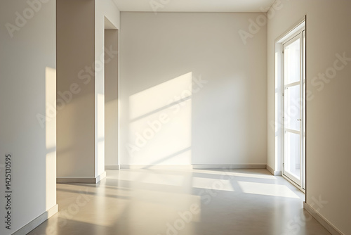 minimalist, hallway, interior, design, architecture, empty, natural, light, roomy, clean, room, contemporary, modern, bright, sunlight, illumination, simple, elegant, serene, tranquil, dwelling, apartment, building, nobody, indoor, construction, perspective, geometric, neutral, colours, flooring, daylight, blank, canvas, artistic, visualisation, conceptual, abstraction, decorative, atmosphere