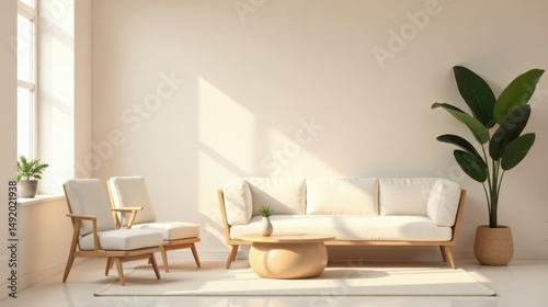 Serene Minimalist Living Room Interior Design with Natural Light and Simple Wooden Furniture