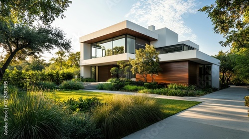 Serene Modern Home Exterior with Fireproof Cladding and Landscape