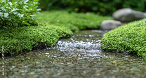 nature, landscape, water, stream, moss, green, forest, tranquil, peaceful, scenic, outdoors, environment, natural, foliage, plant, rock, fresh water, flowing, serene, lush, garden, zen, relaxation, beauty, timberland, creek, river bank, vegetation, flora, serenity