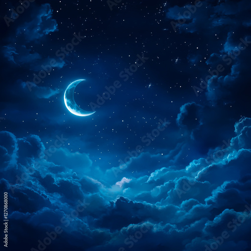 Serene night sky illuminated with full moon and dark clouds background