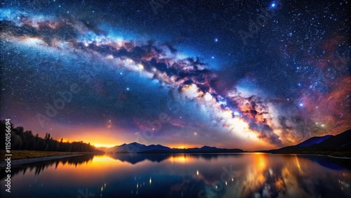 Serene Nightscape Majestic Milky Way Galaxy Arcing Over a Tranquil Lake Reflected in Still Waters