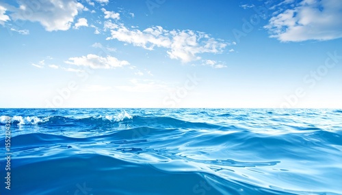 Serene Ocean Horizon Blue Water Summer Sky Cloudscape.