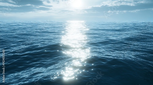 Serene Ocean Surface Sunlight Reflection Peaceful Blue Water Nature Seascape Tranquil Calm Sea Horizon Summer Day Bright Glimmering Waves sky art view