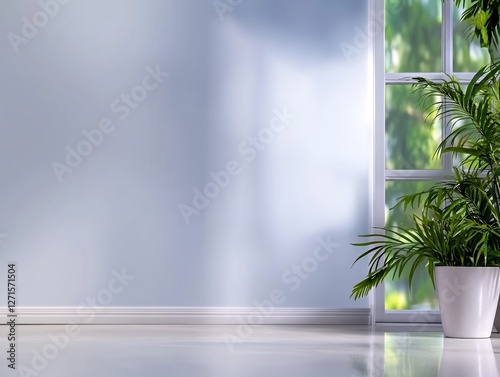 room, interior, wall, window, plant, pot, light, sunlight, shadow, greenery, home, house, design, decor, style, minimalist, modern, contemporary, clean, bright, airy, roomy, peaceful, serene, calm, relaxing, comfortable, cosy, simple, elegant, sophisticated, fresh, natural, green, leaf, flooring, baseboard, shine, blank, empty, space, background, perspective, view, indoor, apartment, building