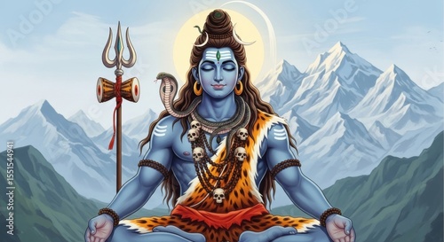 shiva, meditating, himalaya, trident, snake, calm, spiritual, mountain, landscape, deity, zen, portrait, calmness, blue, nature, harmony, meditation, art, illustration, peace, religion, divine, culture, energy, mythology, symbolism, serene, character, devotion, sacred, representation, beauty, yoga, stillness, solitude, powerful, environment, mystical, tradition, faith, scenic, inspiration, elevation, spirituality, sharpened, inner peace