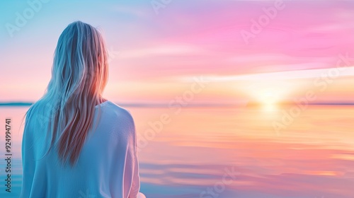 Serene Shore Scene with Mysterious Hair and Pinkish Waters
