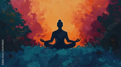 Serene Silhouette of a Meditating Figure in a Colorful Landscape