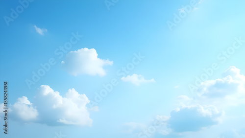 Serene Sky: A Captivating View of Fluffy White Clouds Floating in Azure Blue, Perfect for Tranquil Backgrounds