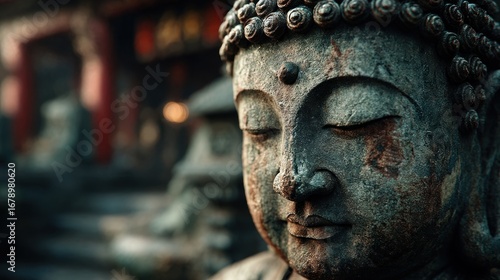 buddha, statue, sculpture, asian, religion, zen, peace, meditation, spirituality, buddhism, cultural, serene, calmness, ancient, religious, oriental, eastern, belief, tradition, artifact, stone, weathered, aged, detail, face, eye, closed, contemplative, background, blurred, garden, temple, sacred, spiritual, nirvana, mindfulness, relaxation, sharpened, harmony, inspire, asia, heritage, artistic, devotional