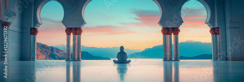 Serene Sunset Meditation: A Person Finds Peace in Architectural Grandeur