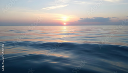 Serene Sunset Over Calm Ocean Waves with Colorful Reflections