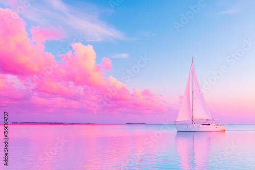 Serene sunset sailboat on calm ocean waters tranquil nautical scene