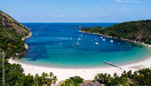Serene Tropical Beach with Sailboats in Crystal Clear Water