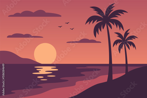 sunset, tropical, palm tree, silhouette, ocean, beach, landscape, horizon, nature, evening, scenery, tranquil, sky, cloud, sunlight, calm, vacation, travel, serenity, warm colors, scenic view, relaxation, summer, coastal, sun, dusk, island, bird, shore, peaceful, paradise, idylli, environment, natural beauty, minimalism, artistic, harmony, seascape, beauty, twilight