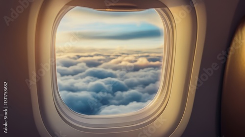 Serene View of Clouds and Sunset from Airplane Window during a Calm Flight