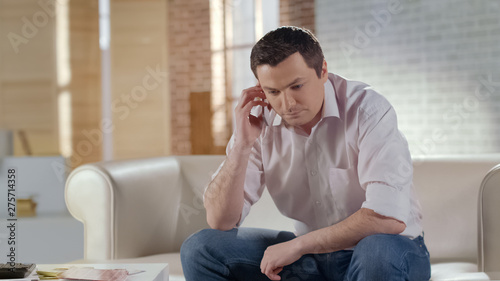 Serious businessman in casual clothes having phone conversation with partner