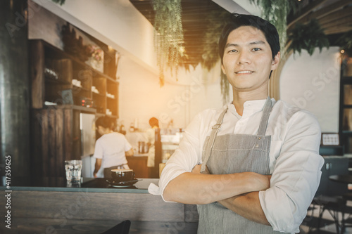 service staff or owner standing in coffee shop