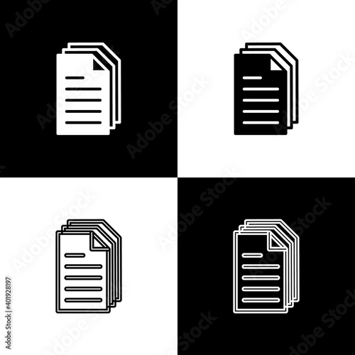 Set File document icon isolated on black and white background. Checklist icon. Business concept. Vector.