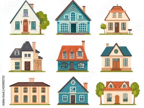 set, house, vector, icon, act, different, style, home, building, city, architecture, town, icon, illustration, house, design, window, roof, urban, village, symbol, exterior, apartment, construction, residential, street, estate, old, cartoon