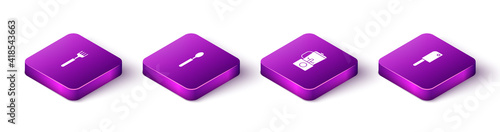 Set Isometric Fork, Spoon, Blender and Meat chopper icon. Vector.
