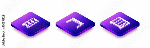 Set Isometric line Chest of drawers, Office desk and Wardrobe icon. Vector