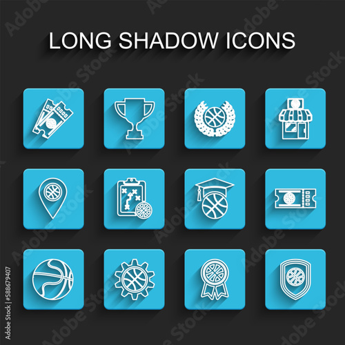 Set line Basketball ball, Planning strategy concept, game ticket, award, Shield the basketball, and training icon. Vector