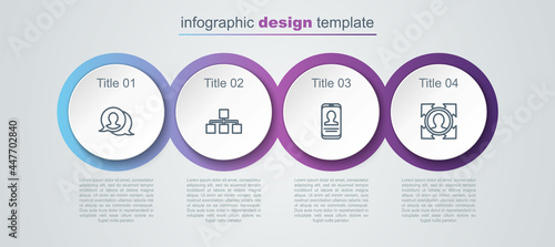 Set line Speech bubble chat, Hierarchy organogram chart, Mobile with resume and Head hunting. Business infographic template. Vector