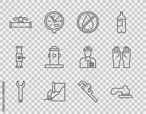 wrench, tool, service, repair, water, dripped, faucet, vector, prohibition, forbidden, icon, isolated, set, line, linear, contour, outline, transparent, black, symbol, no, industrial, pipe, industry, equipment, gas, illustration, fire, emergency, safety, protection, adjustable, plumbing, construction, plumber, glove, hand, finger, protective, men at work, man, maintenance, character, bottle, drink, plastic, soda