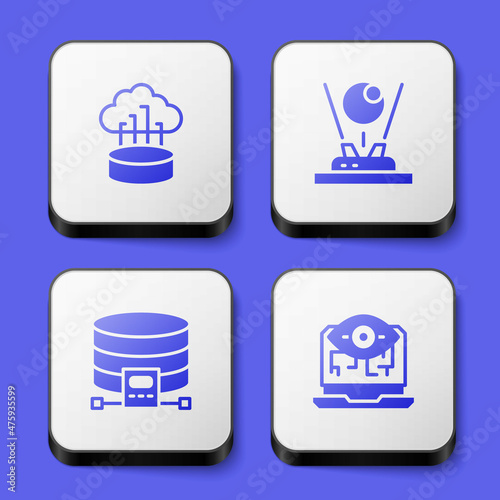 Set Network cloud connection, Hologram, Cloud database and Computer vision icon. White square button. Vector