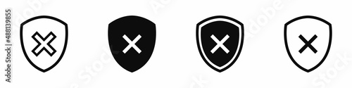 Set no check or cross icon in shield. Vector clipart illustration on isolated background