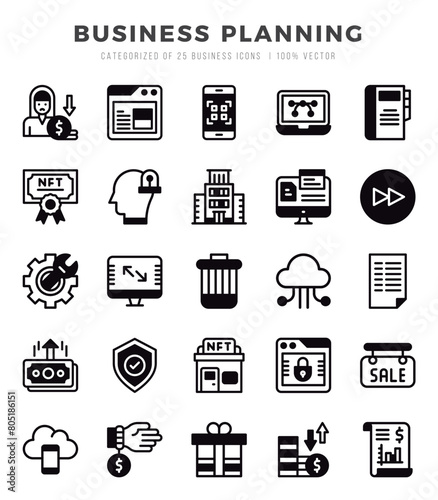 Set of 25 Business Planning Lineal Filled Icons Pack.