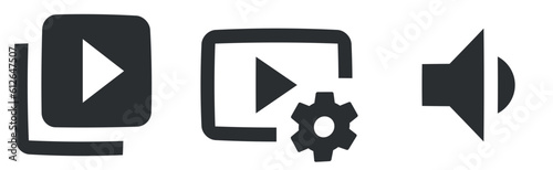 Set of 3 icons Audio and Video. A set vector icons. Simple Set. Linear symbols set. Big UI icon set in a flat design. UI and UX