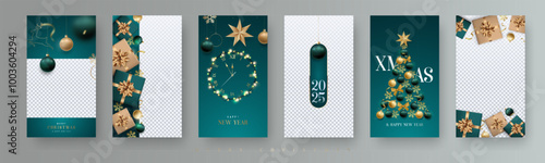 Set of 6 stories template with festive ornaments with greetings for holiday season