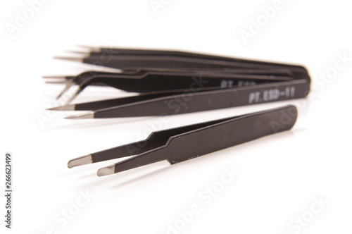 accessory, analysis, canvasses, background, black, carbon, carbon fiber, closeup, closeup, coated, engineering, equipment, grab, instrument, isolated, laboratory, medicals, metal, nobody, object, plastic, precise, precision, professional, research, set, sharp, tip, tool, tweezer, white, white background, work, workshop