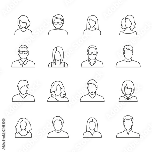 Set of avatar or user icons. Vector illustration. Silhouette of man and woman. Business people.