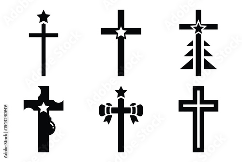 set of christmas cross icon elements collection.