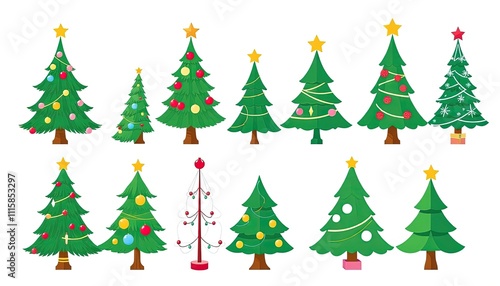 christmas, tree, winter, holiday, fir, vector, snow, pine, illustration, decoration, green, christmas, christmas tree, nature, celebration, season, forest, set, star, december, new year, evergreen, spruce, design, year