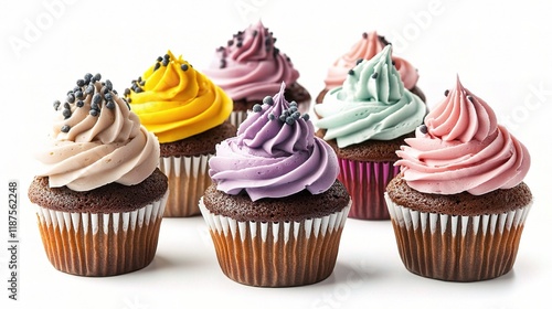 cupcake, colourful, dessert, sweet, frosting, bakery, chocolate, vanilla, pastel, party, decoration, epicure, festive, isolated, fresh, tasty, delicious, indulgence, treat, whipped, cream, candy, sprinkle, food, appetising, vibrant, holiday, celebration, confectionery, design, dining, culinary, sugar, pastry, receipe, homemade, special occasion, iced, freshness, presentation, simple