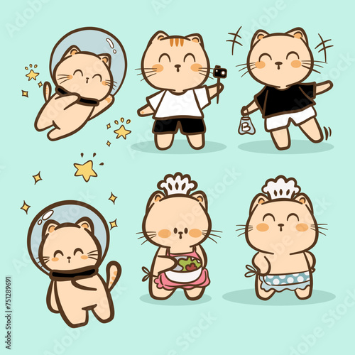 Set of cute Cat and Rabbit cartoon character vector on color background. Cartoon character design. Cute Animals character for kids. Vector illustration.