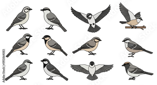 Set of Cute Sparrow Bird Vector Illustrations in Different Poses