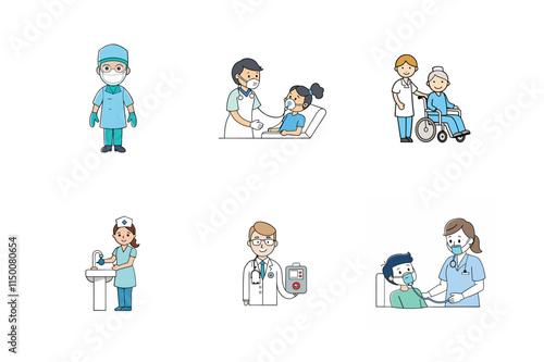 professional, woman, medic, nurse, vector, man, hospital, set, health, medicine, doctor, illustration, medicals, emergency, character, isolated, health care, flat, team, clinic, patient, physician, care, surgeon, apothecary, female, group, male, uniform, stethoscope, health care, infection, aid, virus, cartoon, ambulance, service, icon, mask