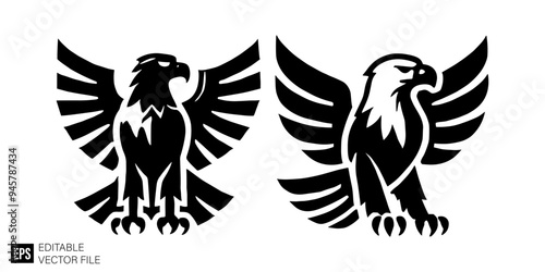 set of eagle graphic design vector clip art black and white silhouette templates