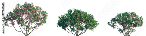 Set of Euphorbia mellifera (the Canary spurge or honey spurge) frontal set street trees isolated png on a transparent background perfectly cutout