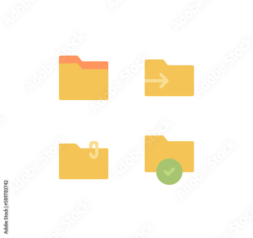 Set of file and folder related icons, repository, sync and flat line variety symbols.