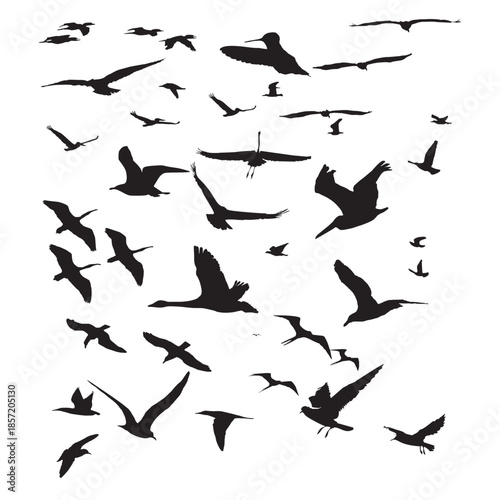 bird, bird, flying, flight, vector, set, flock, wing, wildlife, nature, animal, animal, sky, freedom, migration, seagull, pigeon, dove, crow, raven, eagle, hawk, hawk, swallow, sparrow, black, isolated, white background, illustration, clip art, design, graphic, collection, pose, motion, dynamic, air, natural, pattern, background, poster, banner, logotype, icon, decoration, art