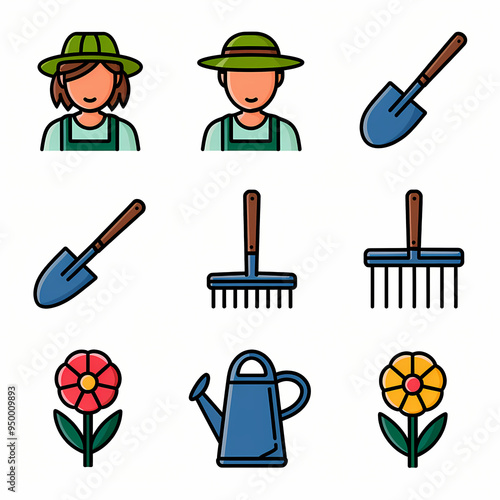 set of gardening icons, gardening theme, set of icons, isolated on white background