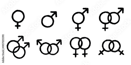 sex, equality, identity, female, male, heterosexual, homosexual, lesbian, set, woman, man, doodle, hand-drawn, sex, single object, logotype, support, community, diversity, representation, inclusion, solidarity, independence, oneness, international, love, human relationships, signs, vintage, design, symbol, vignetting, isolated, element, clip art