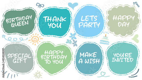 memo, frame, sticker, birthday, theme, hand, drawn, speech, bubble, doodle, wax crayons, happy, party, quote, comic, vector, flat, set, label, blank, text, balloon, cake, boy, happy birthday, invitation, shape, vignetting, speak, speech bubble, drawing, colourful, cute, decoration, birthday party, card, greeting, tags, retro, love, dialogue, box, gift, thank, queen, wish, girl